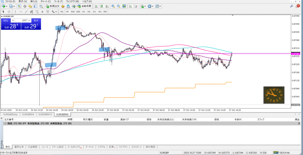 ユーロポンドを0.8721付近でショートしました。