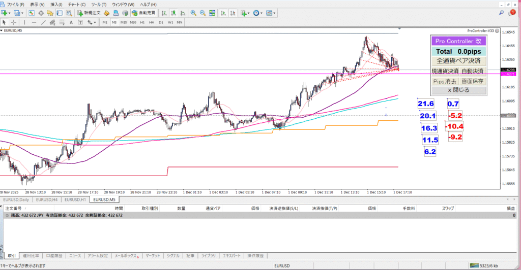• フライングでエントリーしたポジションは損切りとなりましたが、移動平均線付近で動きが止まったため決済しました。