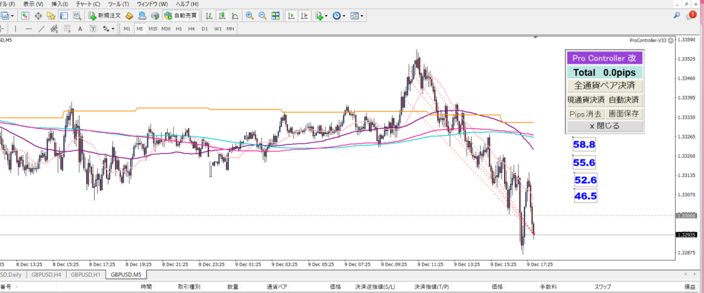 • 下のほうでフライングで入っていたポジションが4つありましたが、抵抗帯で早々に決済していました
