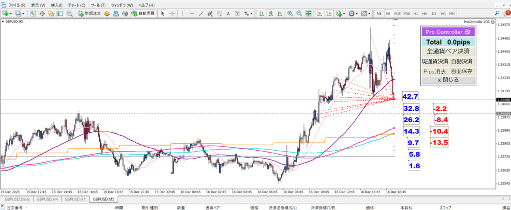 ポンドドルを1.33957~1.34420でショートしました。